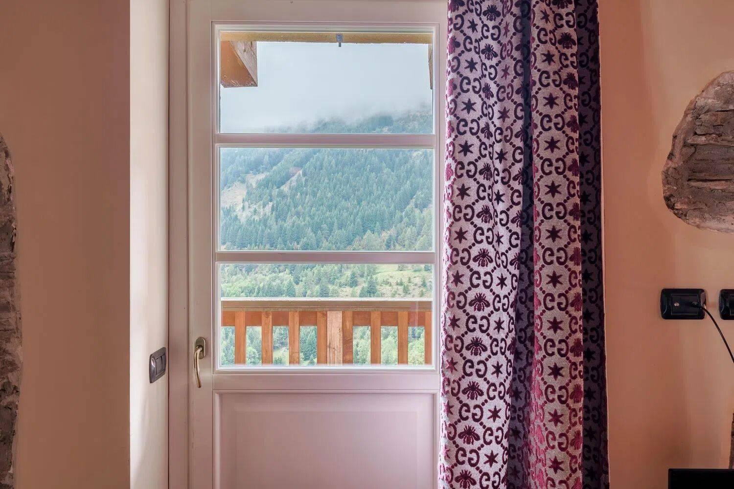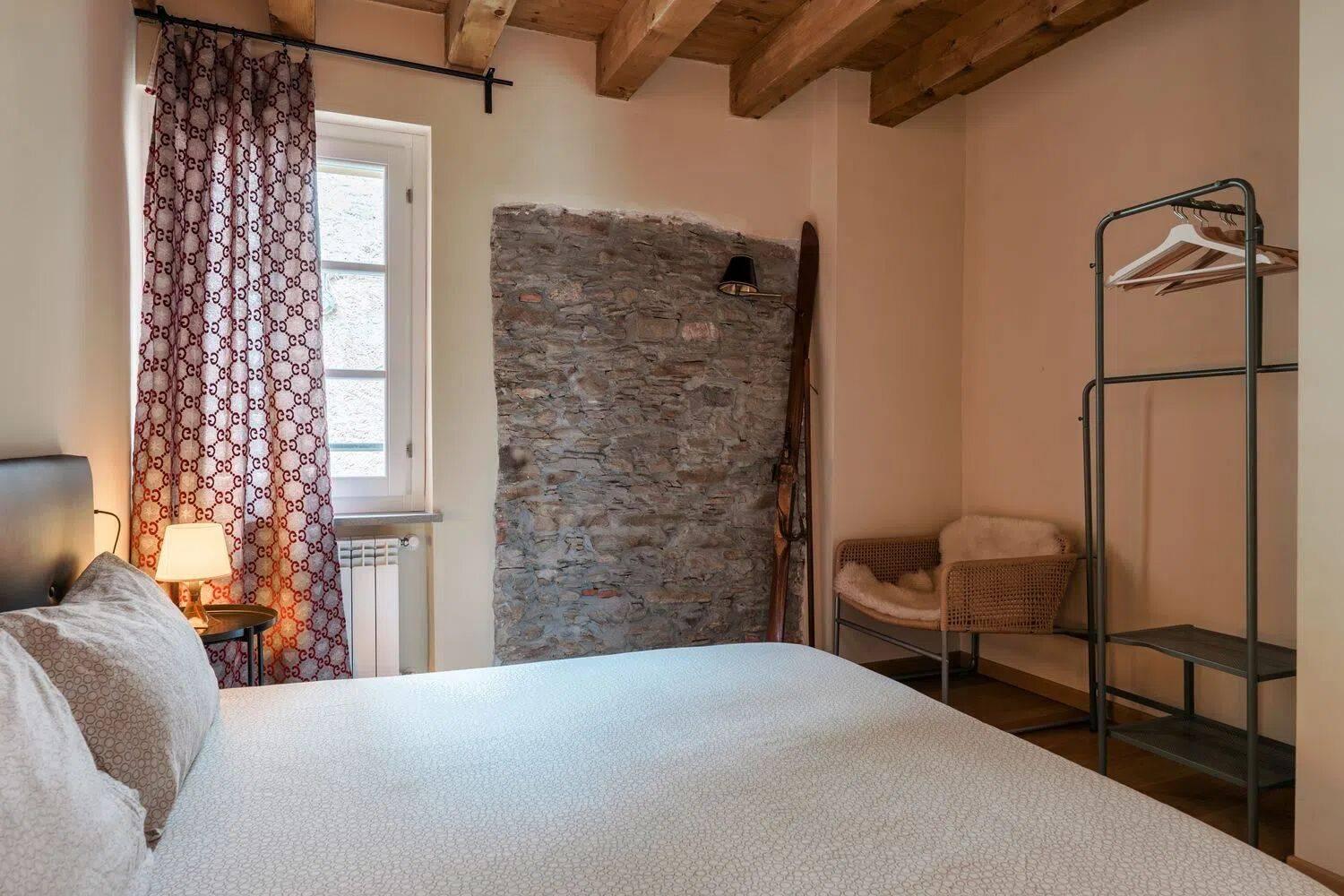 L’ingresso si apre su un soggiorno ampio e luminoso, perfetto per momenti di relax, dove la zona divani si affaccia su una vista panoramica incantevole, con un camino in pietra locale che arricchisce l’ambiente. Le due camere da letto, entrambe molto luminose, offrono un’atmosfera serena e accogliente, con una delle camere dotata di balcone. Il bagno, spazioso e ben illuminato, completa la zona notte con uno stile ricercato e funzionale.